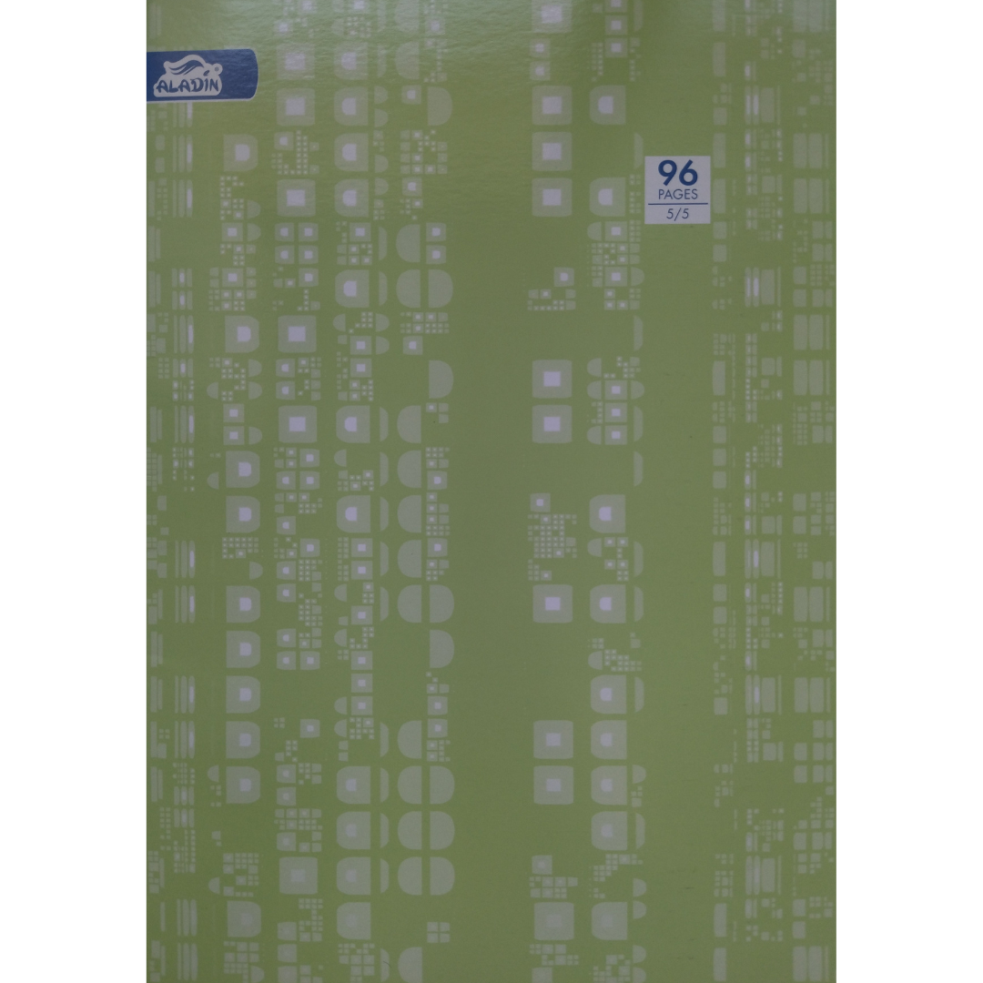 Cahier piqué Aladin – petits carreaux 5/5 – 96 pages – Format A4 (21×29,7 cm) – Papier offset blanc 60 g – Couverture vernis lavable.