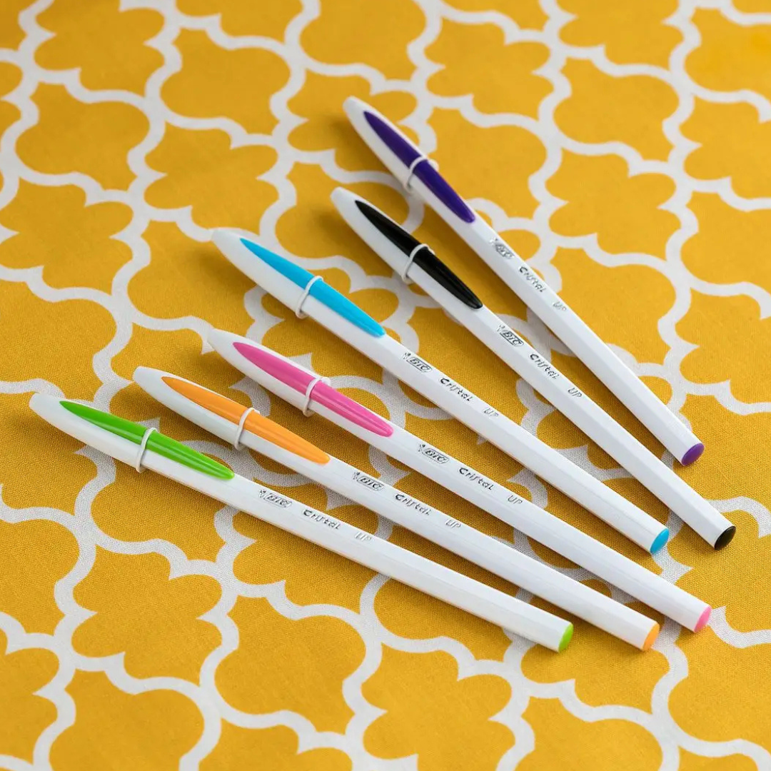 Le stylo BIC Cristal Up Bleu offre une sensation de douceur intense. Sa pointe large de 1,2 mm permet un tracé fluide. Corps blanc opaque avec capuchon et embout bleus pour un look élégant et professionnel.
