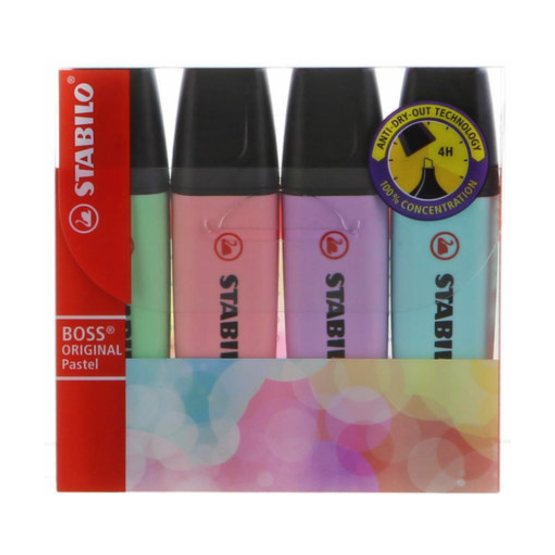 Le STABILO BOSS ORIGINAL Pastel est le surligneur iconique revisité dans des teintes pastel modernes. Cet étui de 4 coloris assortis apporte douceur et style à vos prises de notes, révisions ou créations. Grâce à sa technologie anti-dessèchement (jusqu’à 4h sans capuchon), il offre confort et fiabilité. Sa pointe biseautée permet de réaliser des traits de 2 à 5 mm, adaptés au soulignement comme au marquage. Un indispensable pour les étudiants, enseignants et professionnels.